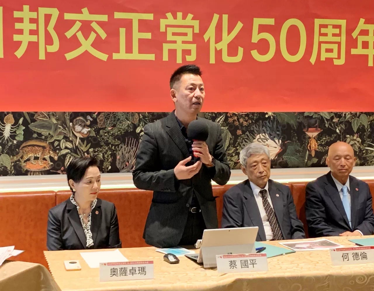 2022年4月27日,纪念中日邦交正常化50周年庆典晚会的新闻发布会现场蔡国平发表讲话。(图/受访者供图)