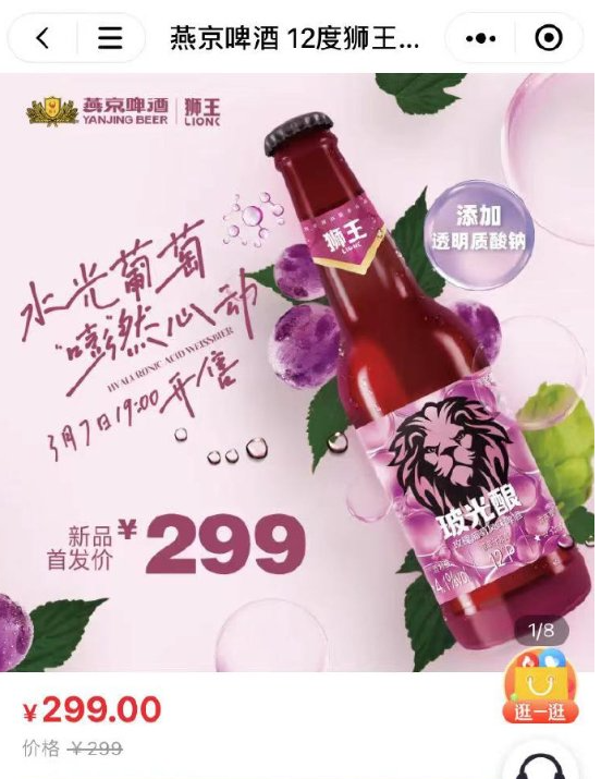 3月9日,据燕京啤酒官网微信公众号消息,燕京啤酒在京东、天猫、抖音等线上全渠道发布首款透明质酸钠啤酒——燕京狮王12度玻光酿玫瑰葡萄精酿啤酒。