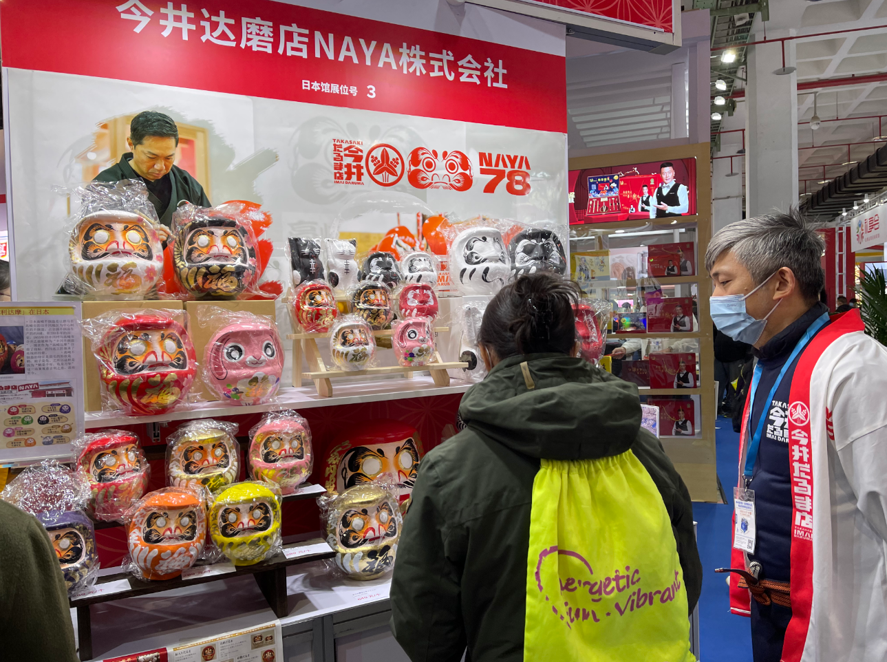 【日本头条孙京报道】3月23日,第47届中国北京国际礼品、赠品及家庭用品展览会在中国国际展览中心(朝阳馆)开幕,“高崎达摩”、滋贺县瓷器、富山县锡器等多款日本特色手工艺品亮相礼品展日本馆,吸引来往的买家驻足。