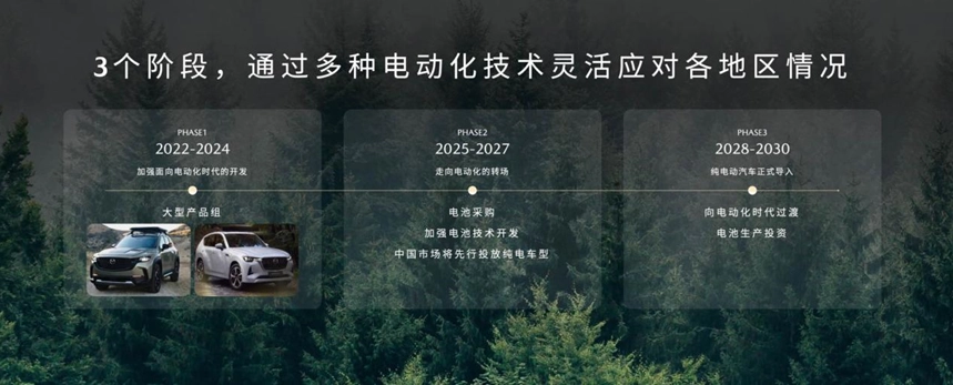 根据官方公布的3个阶段时间图,马自达计划2025-2027年率先向中国市场投放纯电车型,2028-2030年正式导入纯电动汽车,向电动化时代过渡。
