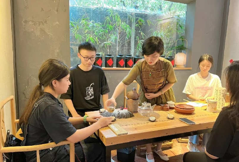 茶舍主理人亲自向顾客示范和讲解“工夫茶”相关知识。(图/北京《证券日报》)