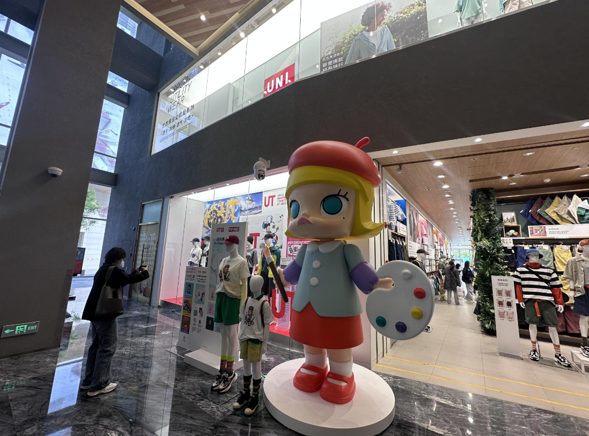 此外,优衣库20省春夏新品巡展目前已登陆北京三里屯全球旗舰店。“五一”假期临近,品牌方推出更多新品丰富线下消费乐趣,泡泡玛特合作UT将于4月28日上市,热血动漫《龙珠》合作款将于5月上市。门店内还新设置了POP MART巨型玩偶MOLLY、活力运动场等打卡体验处。
