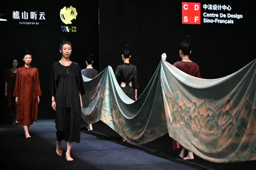 图为5月2日,模特在广交会上展示香云纱服装。(图/中新社)