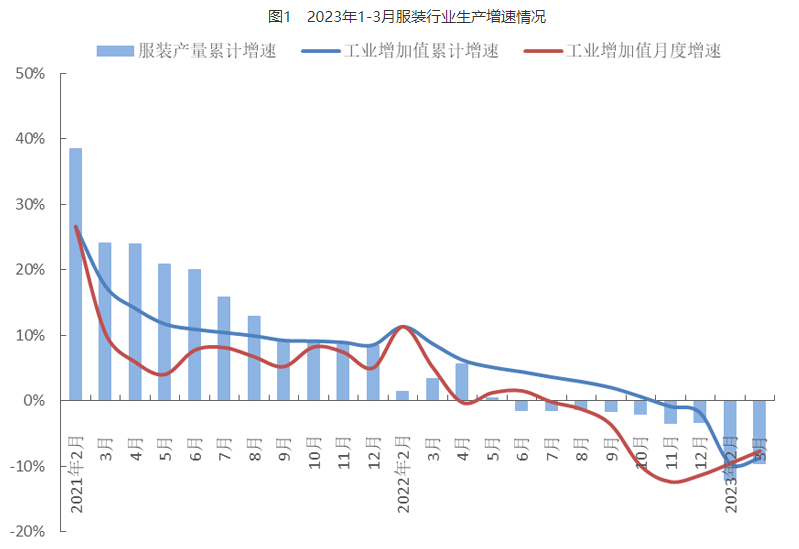 2023年1-3月中国服装行业生产增速情况。(图/中国服装协会官网)