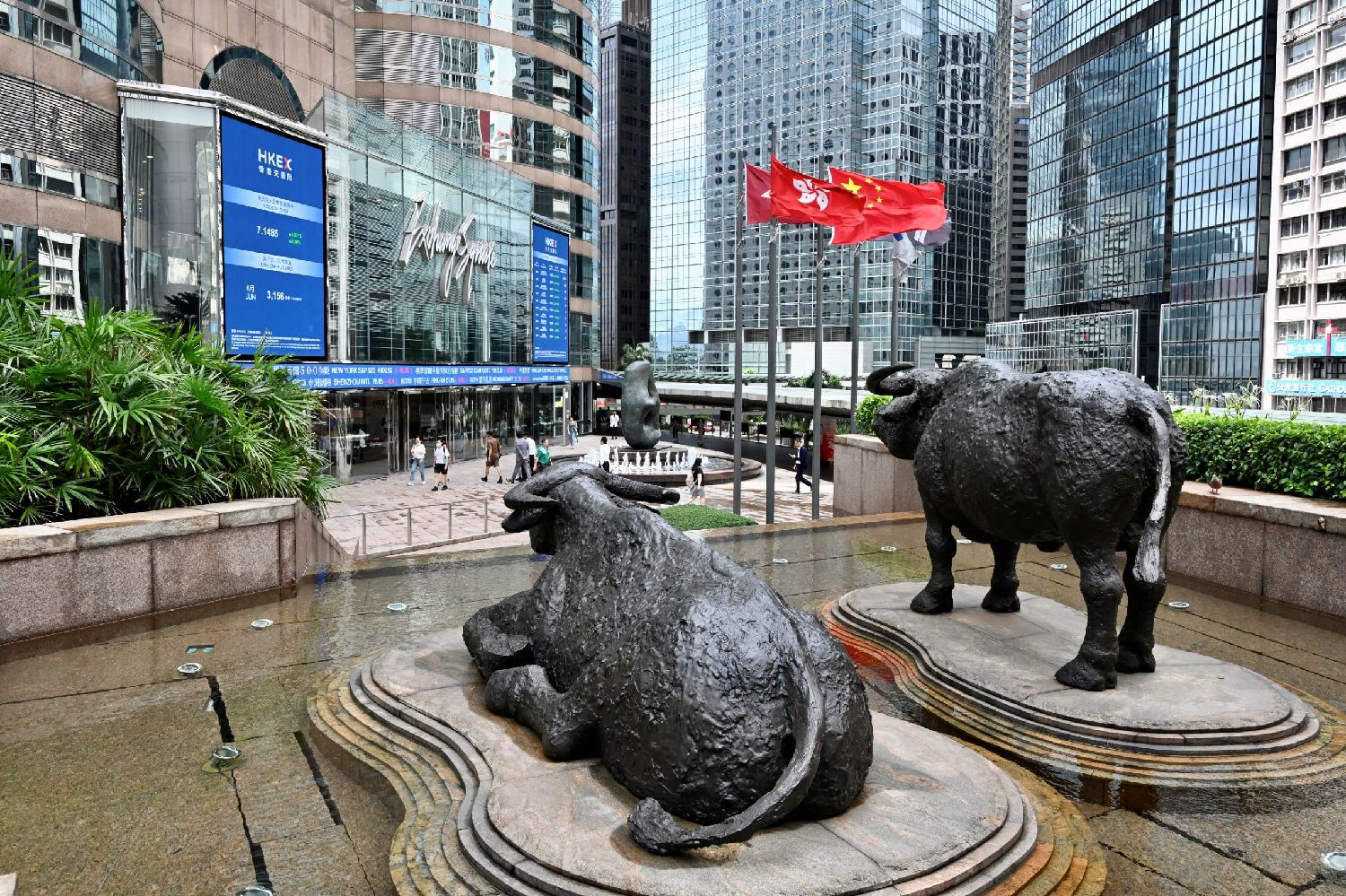 图为香港交易广场的铜牛雕塑。(图/中新社)