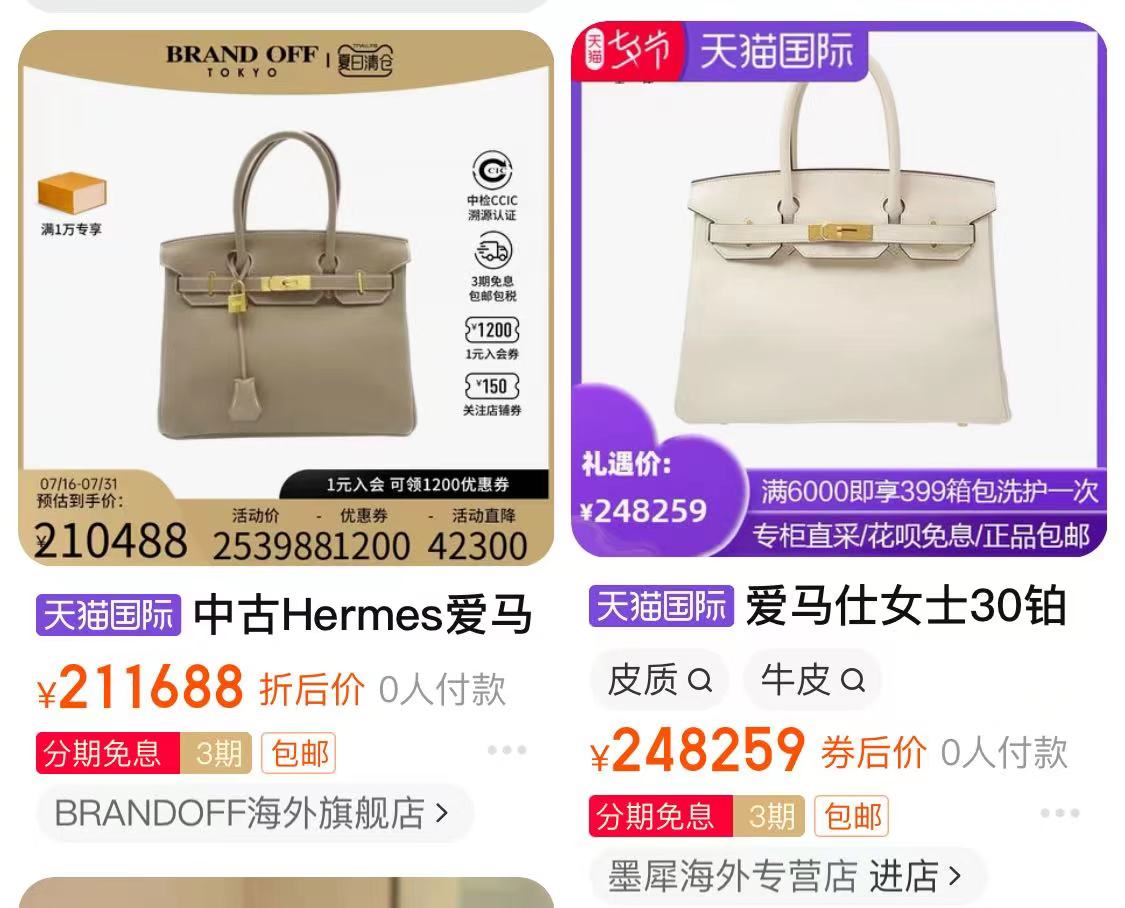 在一些二手交易平台搜索可以发现,一些“二手”的爱马仕手袋价格甚至远超过原价。