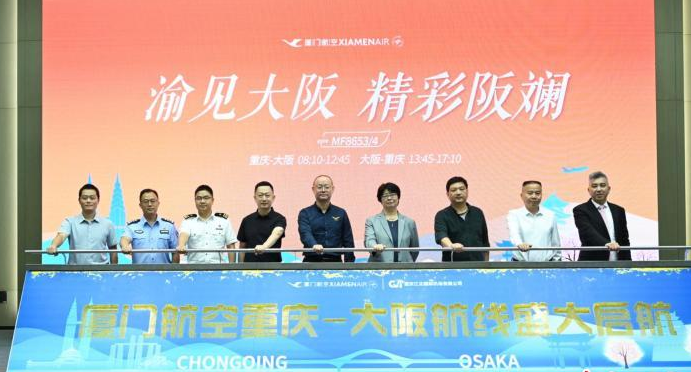 厦门航空25日在重庆举行新闻发布会,宣布将于8月5日正式恢复开通重庆—大阪的国际航线。这也是自2020年以来,重庆首次恢复至日本航线,将为两地旅客提供便捷的空中通道和高质量的出行体验。
