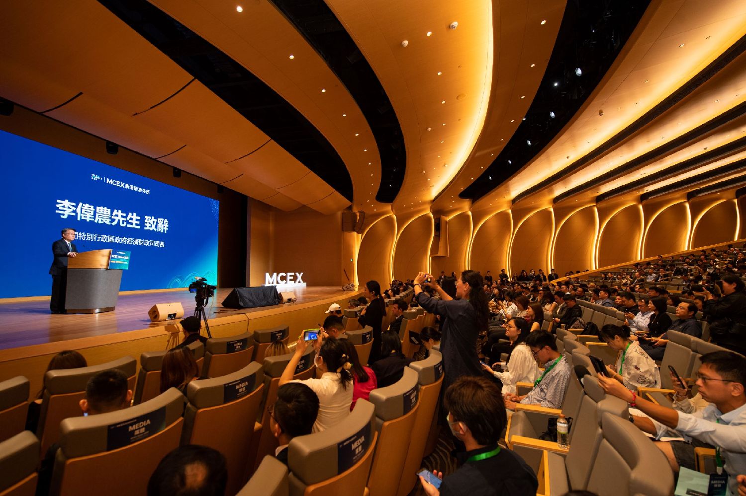 8月3日,以“让世界看见小微的力量”为主题的滴灌通澳交所首届小微生态大会(MCEX Vision2023)暨正式营运发布会在银河国际会议中心举行。(图/香港中通社)