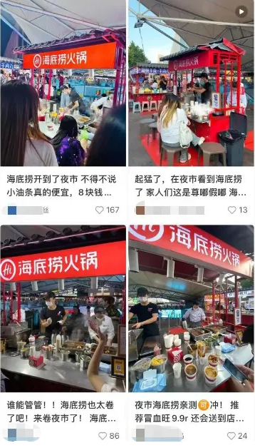 图为各地夜市均有海底捞的身影。(图/社交平台“小红书”截图)
