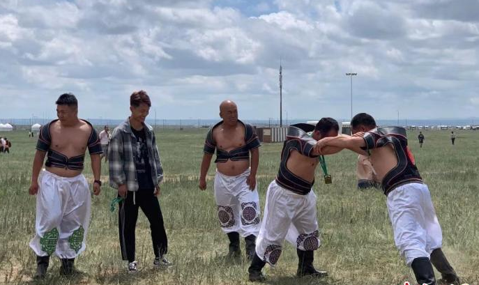 图为游客们换装后参加搏克体验赛。(图/中新网)
