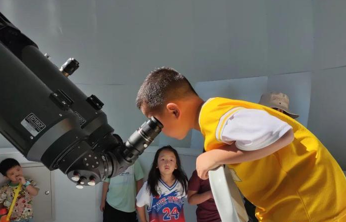 图为孩童正在使用天文望远镜。(图/中新网)