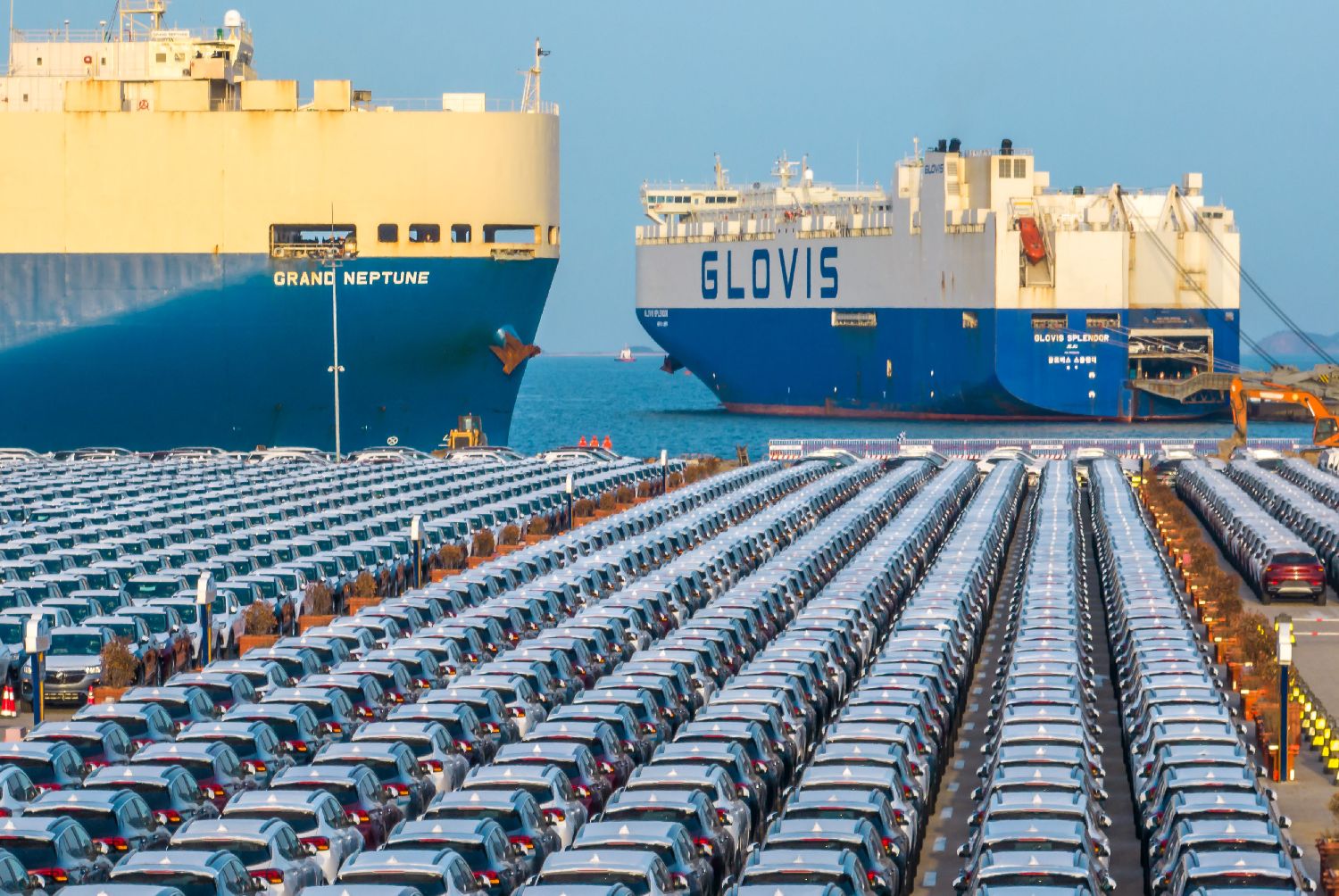 图为3月17日拍摄的烟台港外贸商品车“出海”场景。(图/中新社)