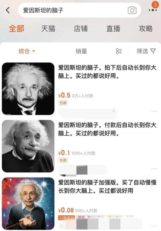 有多位网民反映,网购平台上有不少商家售卖“爱因斯坦的脑子”,销量颇为可观,引发热议。