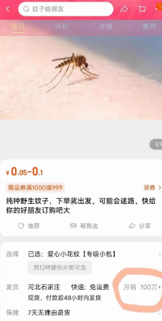 图为商家售卖虚拟蚊子。(图/中国网络购物平台“淘宝”截图)
