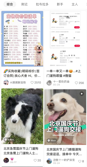 小红书有许多上门遛狗的笔记。(图/小红书APP截图)