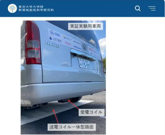 图为日本小组开始公共道路电动汽车无线充电设施的系统实验。(图/东京大学网站截图)