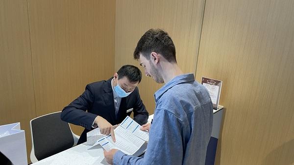 一位境外旅客正在办理退税业务。(图/“上海税务”微信公号)