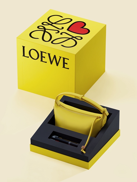 李响与邢晨为LOEWE(罗意威)设计的2022年520特别系列Cubi手袋包装。(图/上海第一财经)