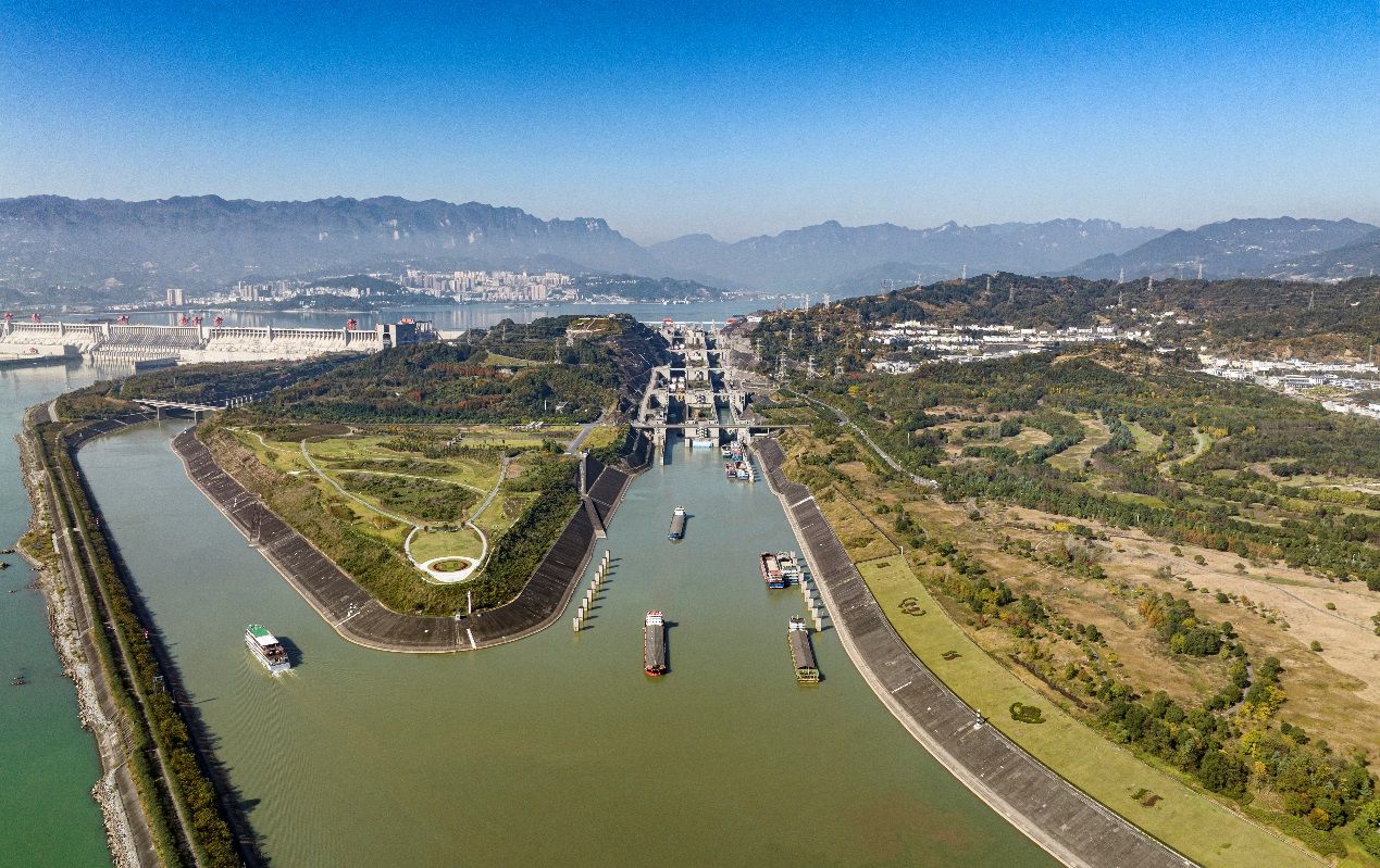 2023年10月12日,船舶有序进出三峡船闸、三峡升船机。(图/中新社)