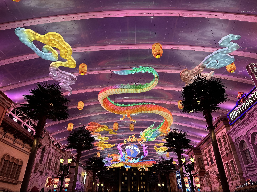 1月27日,北京环球度假区“环球中国年”主题活动正式开启。喜庆的节日装置、全新的演出以及龙年元素的周边产品,为游客带来浓浓的中国年气氛。