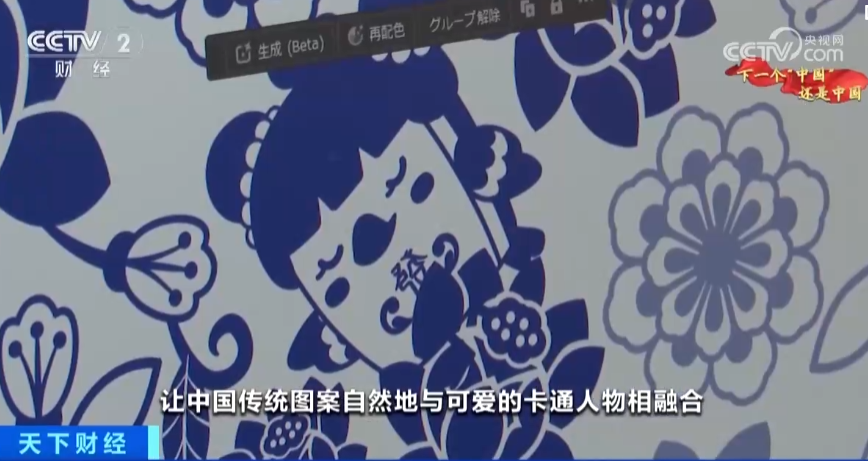 “麻雀小七”和青花瓷花纹融合。(图/中国央视财经)
