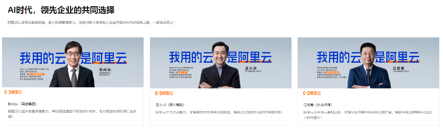 AI时代,阿里云是很多企业的选择。(图/阿里云官网截图)