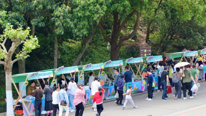 今年“五一”期间,九龙湖土特产集市人气旺。(图/中新网)
