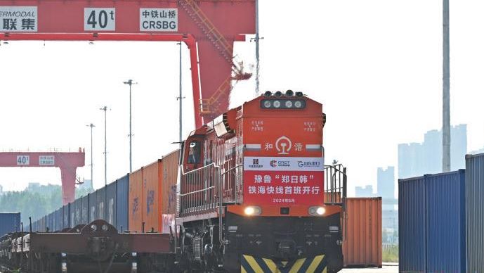 中国铁路郑州局集团有限公司(简称“国铁集团郑州局”)22日发布消息称,5月21日,首趟豫鲁“郑日韩”铁海快线班列已从国铁集团郑州局圃田车站启程,装载铝箔制品、钢制家具等1000余吨货物前往山东黄岛港,再经海运最终将运至日本、韩国等国家。