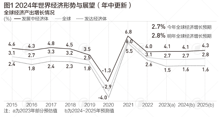 报告预计,2024年发达经济体将增长1.6%,高于年初预测的1.3%;发展中经济体将增长4.1%,略高于年初预测的4.0%;最不发达经济体将增长4.8%,略低于年初预测的5.0%。