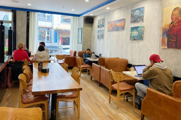 4月29日,拉萨八廓古城一家咖啡馆内的本地青年。(图/中新社)