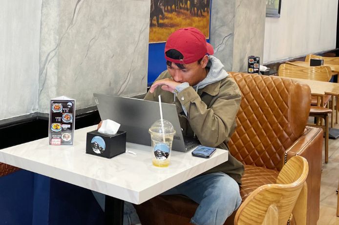 孙浩来自安徽宣城,作为背包客一路搭车进藏,旅居西藏已10年。2022年开咖啡馆前,他做过一年的甜茶馆,彼时更多面向游客。喜欢咖啡、喜欢拉萨,孙浩做咖啡馆更多在情结,故开店选址在八廓古城。顾客多以周边年轻的上班族为主,他也会通过小红书、抖音等新媒体引流游客。