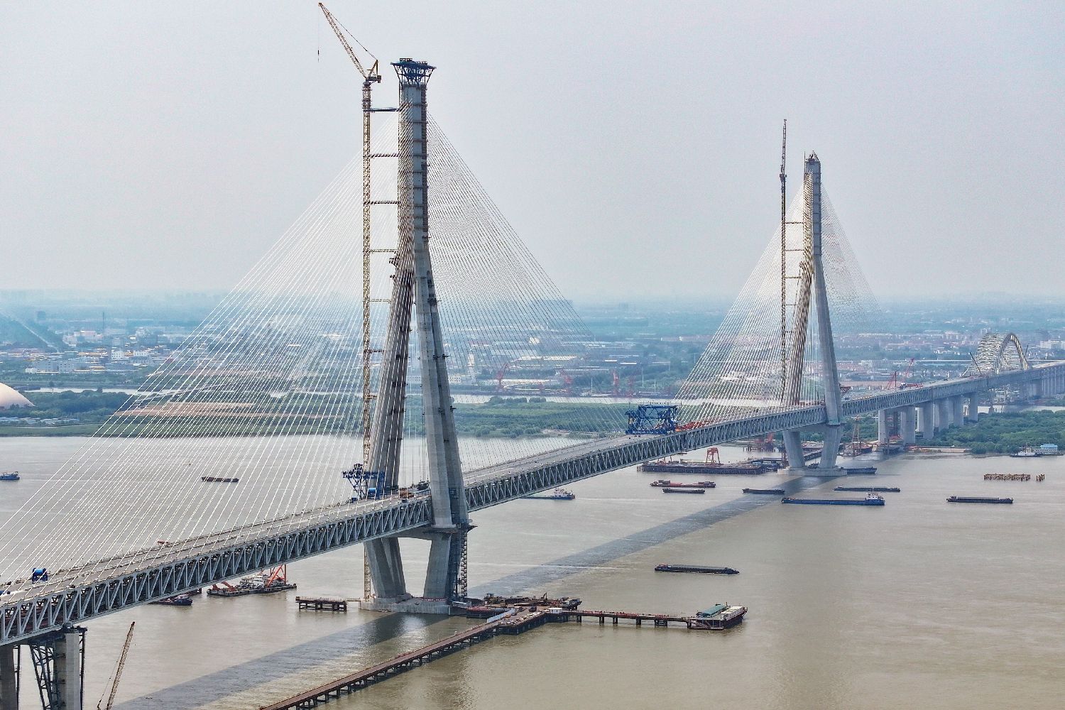 世界最大跨度斜拉桥实现毫米级精准合龙