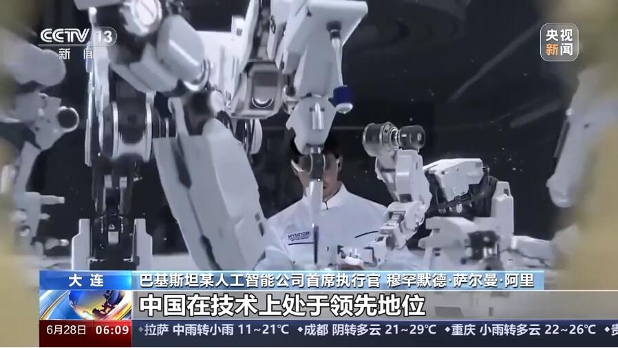 在第十五届夏季达沃斯论坛三天的会期中,据悉,不管是议题设置,还是嘉宾的讨论焦点,人工智能等科技前沿话题备受关注。(图/中国央视新闻视频截图)