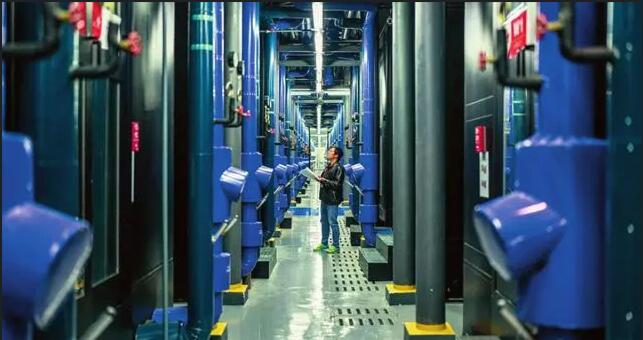 工作人员在中国联通贵安数据中心对微模块机房运行状态进行巡检。(图/新华社)
