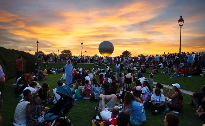 8月4日,人们在观看巴黎奥运会主火炬。(图/新华社)