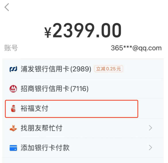图为付款选项中的裕福支付。(图/《北京商报》)
