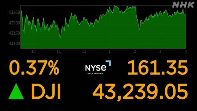 另一方面,在纽约股市,由于对美国经济前景的期待,买盘占据主导地位。道琼斯工业平均指数收盘时比前一天上涨161.35美元,达到43,239.05美元。这是道琼斯工业平均指数连续第二天创下新高。