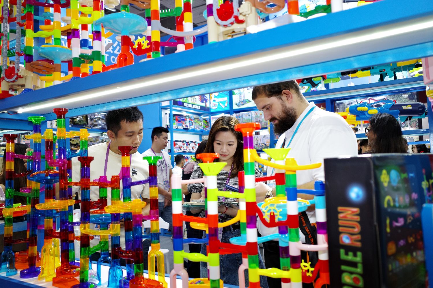 10月31日,广东广州,第136届广交会第三期的玩具展位吸引采购商参观。(图/中新社)