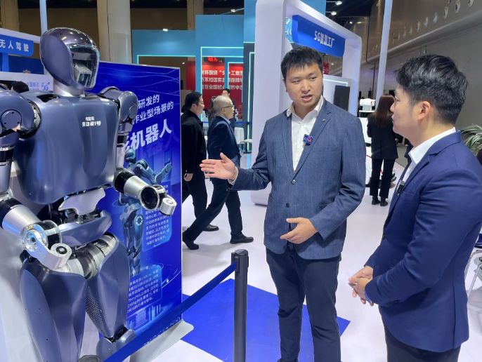 本届大会以“实数融合智造翘楚”为主题。在会场内,设置了工业机器人、人形机器人、智能网联汽车等实物交互体验展示区,运用视觉体验技术展示“5G+工业互联网”应用场景;会场外,无人驾驶等活动科技感十足。