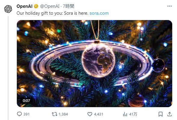 Sora正式开放。(图/X截图)