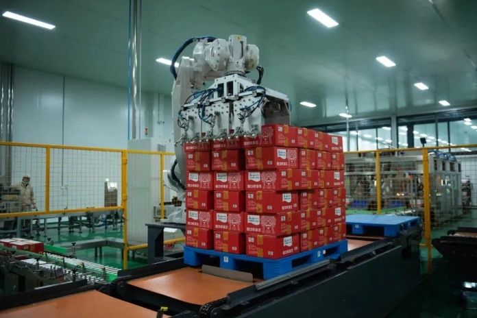 在中国酱腌菜行业唯一一家上市公司,重庆市涪陵榨菜集团股份有限公司的数字化生产车间内,切分、筛分、脱盐、脱水、拌料、分袋、灭菌、装箱码垛,一系列的全流程操作解放了工人双手,高效又环保。