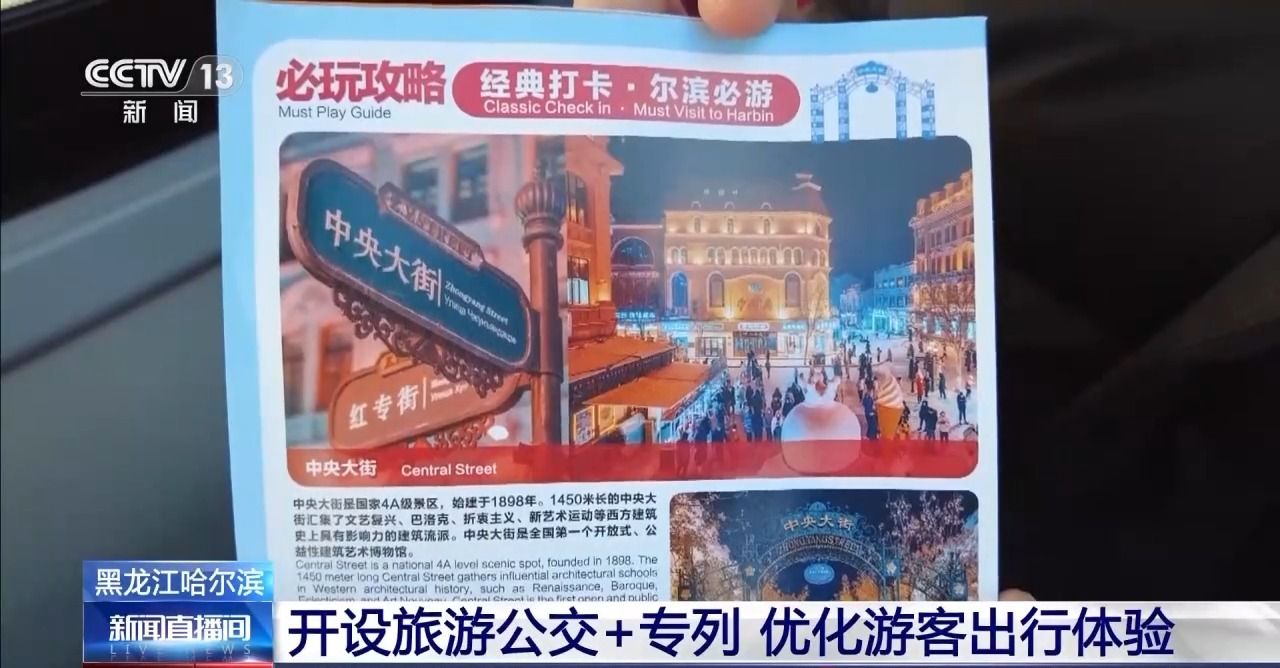 总台记者王海樵:如果这个冬天您是第一次来哈尔滨旅游,可以选择旅游巴士来逛一逛哈尔滨。目前,整个哈尔滨的公交系统已经开辟了八条旅游专线,旅游巴士不仅可以串联起哈尔滨几乎所有的知名景点,同时在车上还会提供一系列的暖心服务。