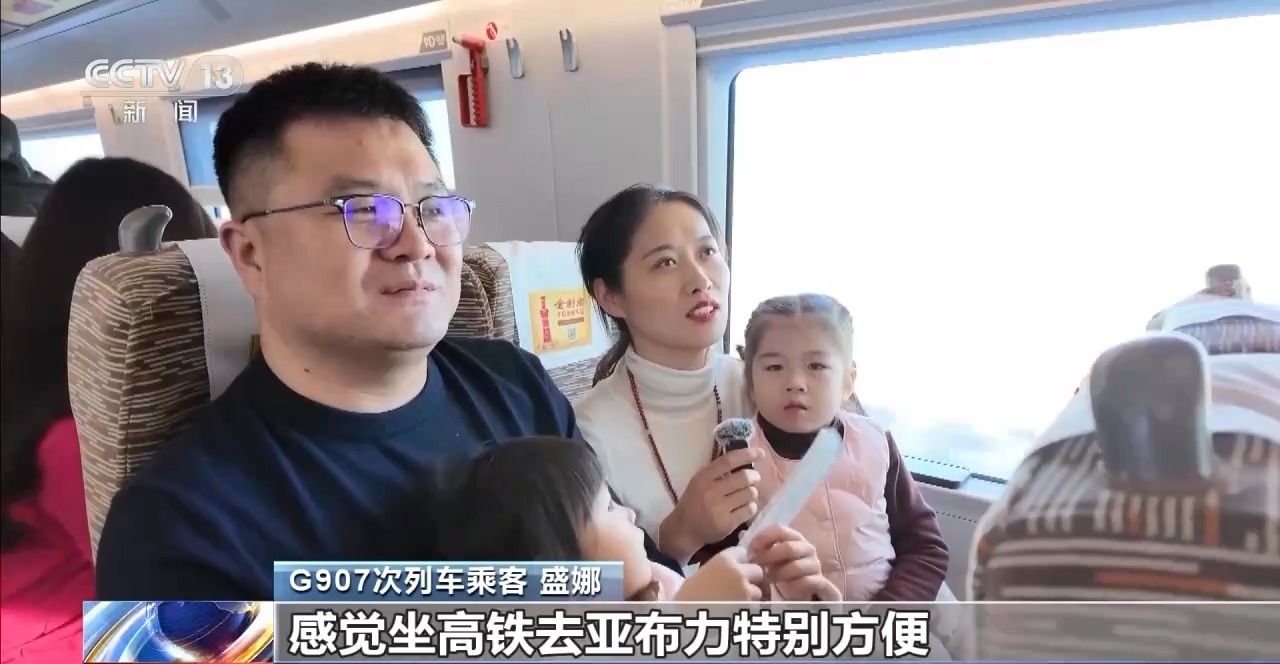 G907次列车乘客盛娜:我们是一家四口乘高铁去亚布力玩,感觉坐高铁去亚布力特别方便,特别期待这次的亚布力之行。