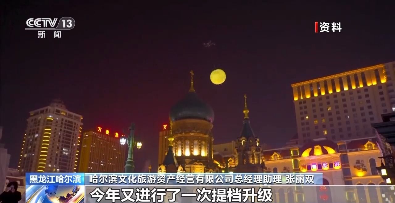 上个冰雪季,索菲亚广场人造月亮火遍全网,今年当地还推出了“月升索菲亚2.0”版本。