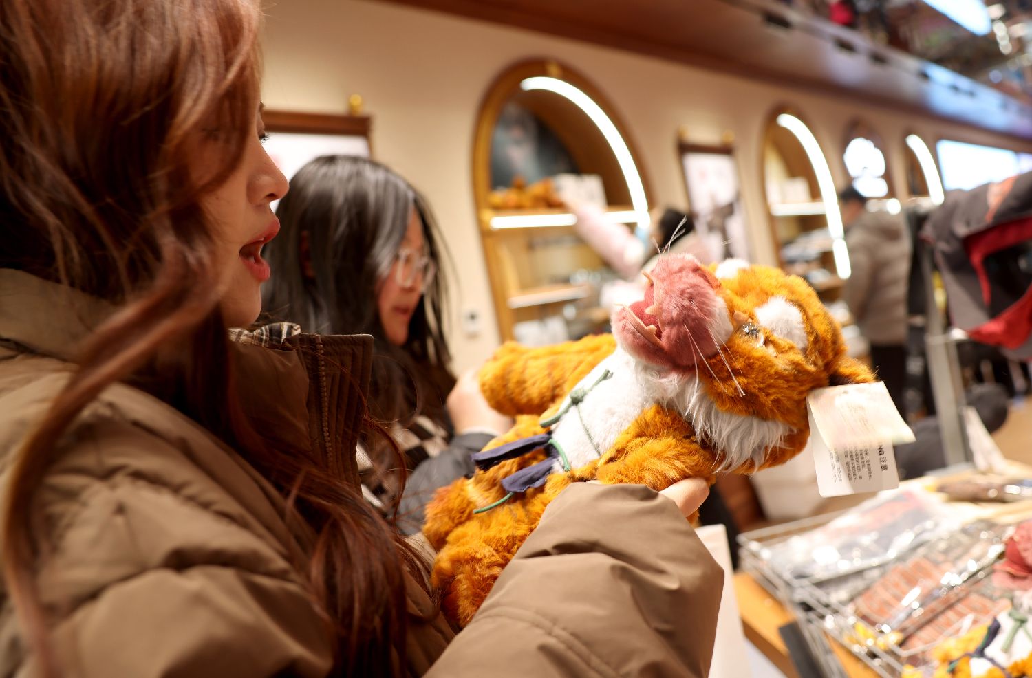 2025年1月17日,顾客在店门内选购《黑神话:悟空》周边产品“虎先锋”。(图/卞亚文)
