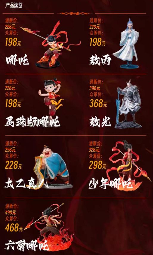 还有网民在官方授权的网店下单,官方众筹的140mm高的摆件产品中,敖丙198元,灵珠版哪吒198元,敖光368元,等等。
