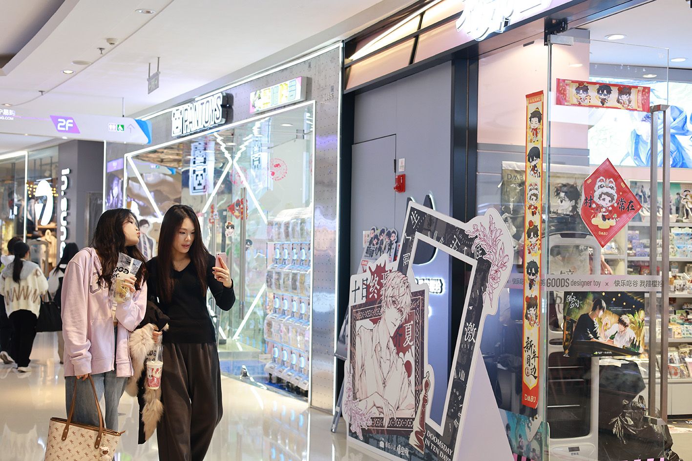 4月9日,消费者在北京一商城内选购“谷子”。“谷子经济”是围绕二次元相关的游戏、动漫等IP衍生出的周边商品经济。(中新社)