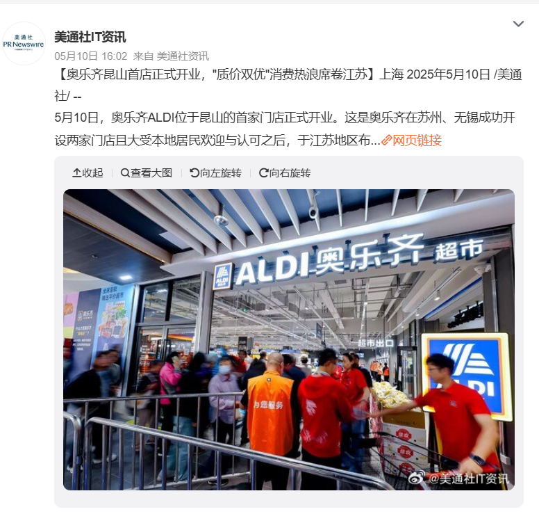 此次进驻昆山,是奥乐齐深耕江苏市场、布局长三角战略版图的重要举措。昆山新店的开业,不仅为本地居民提供了全新购物地标,掀起民生消费热潮,还将激发“首店经济”效应,为区域经济发展注入新动能。