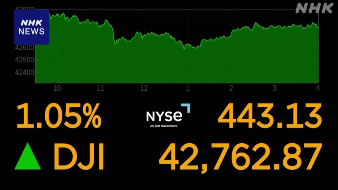 收盘时,道琼斯工业平均指数上涨443.13点,报42762.87点。
