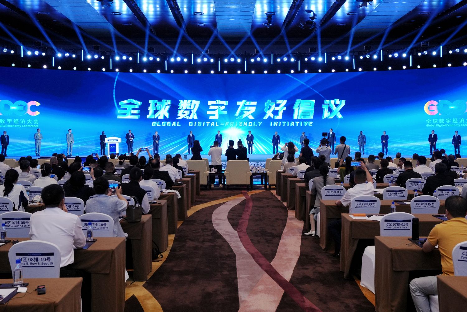 7月2日,2025全球数字经济大会数字友好城市建设全球对话会在北京国家会议中心举行。图为《全球数字友好倡议》发布仪式。(图/中新社)